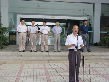 在升旗仪式上,学校党委书记叶长明同志作了重要讲话。叶长明希望通过这次升国旗仪式在全校师生中开展一次深刻的理想信念教育和爱国主义教育,并将这种满腔的爱国之心转化为实实在在的爱国之情和爱国之行。叶长明要求,全校师生要树立远大理想,努力学习,勤奋工作,大学生要把学习作为第一要务;要弘扬中华民族优良传统,勤劳勇敢,勤俭节约,艰苦奋斗,反对浪费,以俭养德;要倡导科学精神,坚持真理,反对迷信,树立正确的世界观、人生观和价值观,热爱祖国,热爱人民,热爱生活,做到德智体美全面发展。(宣传部)