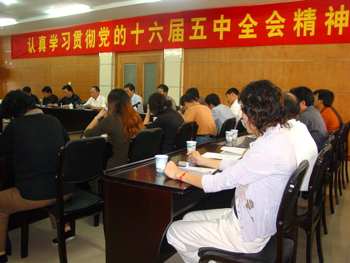 13日下午,学校党委理论学习中心组在行政楼四楼会议室召开第三次专题研讨会,主要内容是学习十六届五中全会公报,专题研讨保持共产党员先进性、推动必赢官网基层党组织建设。校党委书记叶长明主持研讨会。 会上,通读了十六届五中全会公报全文。党委书记叶长明指出,党的十六届五中全会是在我国即将完成“十四五”规划,改革发展进入关键时期召开的一次具有历史性意义的重要会议,会议认真总结了“十五”时期所取得的重大成就,明确了下一个五年经济社会发展的指导方针、奋斗目标、主要任务和重大举措,制定描绘了今后五年经济社会发展的宏伟蓝图,是一次民主、团结、务实的会议。我们一定要认真学习,深刻领会五中全会精神,并结合学校实际认真贯彻落实。 叶长明就下一步在全校范围内组织学习贯彻十六届五中全会精神作了部署,要求:一是在当前和今后一个时期要认真组织好党员、干部和全体师生三个层面的学习。二是要以五中全会精神为动力,努力推进学校当前各项工作 。三是要以五中全会精神为指导,坚持科学发展观,进一步制定、完善必赢官网的“十一五”发展规划。四是要以五中全会精神为纲领,以全面加强党的建设统领全局。要坚持立党为公、执政为民,加强党的执政能力建设和先进性建设,为学校的全面、长远发展提供根本政治保证。 会上,党委副书记钱清荣就校园廉政文化建设作了专题报告,从加强校园廉政文化建设的意义、作用、主要任务、内容、机制和落实途径展开了讨论。组织部长作了题为“学先进,做先进,充分发挥共产党先锋模范作用”的专题报告,从如何做人、做事、做学问三个方面阐述了保持共产党员先进性的必要性。 学校党政领导叶长明、郑家锦、姜锡康、周兆良,先进性教育办公室成员及各系(部)、处(室)负责人参加了会议。(文/郑琴 摄/赵学慧)
