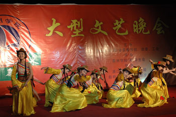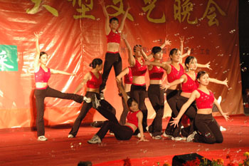 全校12个系及必赢官网附属学校100多名师生参加了演出。晚会上,演员们用各自独特的风格表演了独唱、合唱、乐器伴奏、街舞、群舞、小品等20余个精彩的节目 。从晚上6:30直到9:00,晚会现场人山人海,气氛高潮迭起。