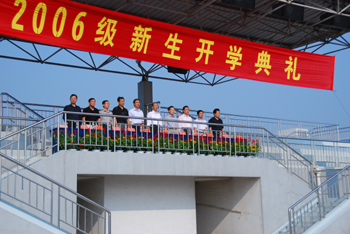 9月22日上午,2006级新生开学典礼在校运动场隆重举行。开学典礼由郑家锦主持。出席开学典礼的学校领导还有叶长明、钱清荣、江爱民、姜锡康、周兆良等。