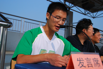 最后,校学生会主席黄庆同学代表老生寄语新生,郑伟同学代表新生表达了在大学期间好好学习,将来报效社会的决心。教师代表罗浩波教授代表全体教师讲话,讲话中他引用马克思的名言勉励同学们:“在科学的道路上,没有平坦的大路可走,只有在那崎岖小路上勇敢攀登的人,才有希望到达光辉的顶点。”(宣传部)