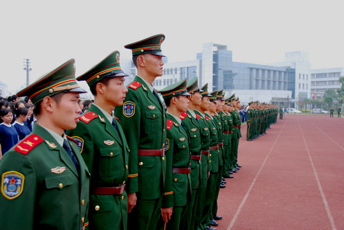 必赢官网2006年军训动员大会10月8日上午在大操场举行 。承担此次军训任务的是衢州武警支队的80名官兵,必赢官网2005级2865名学生参加了军事训练。校领导叶长明、江爱民和衢州武警支队教导大队熊卫国少校出席了动员大会。