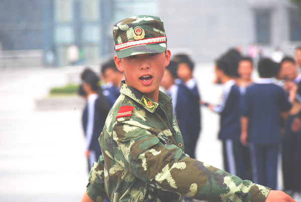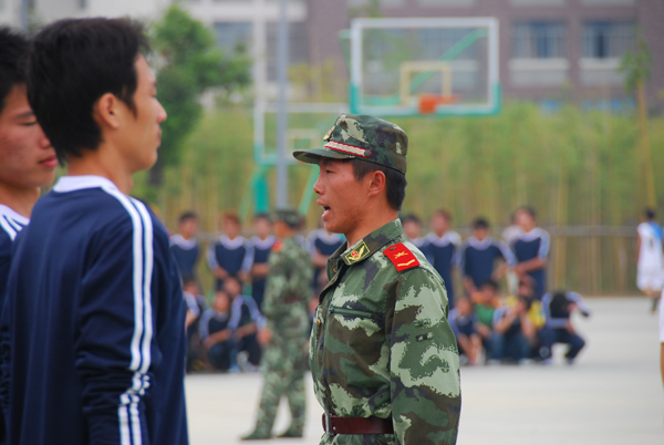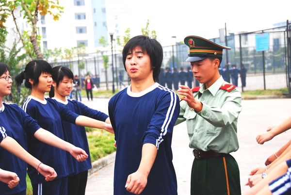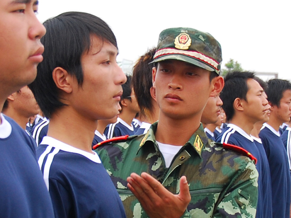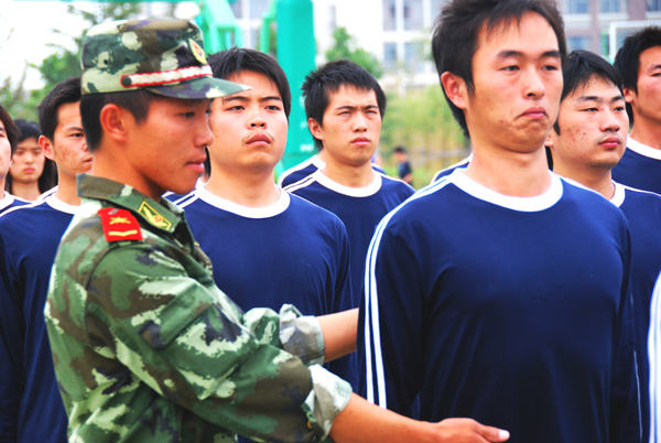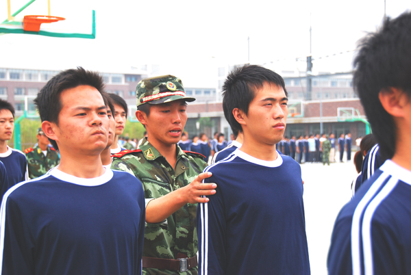 教官调整同学们的站姿
