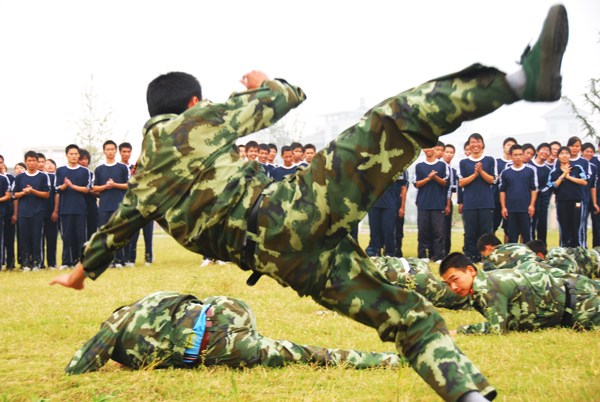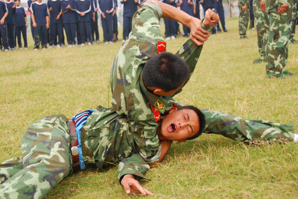 教官们表演精彩的擒拿格斗术
