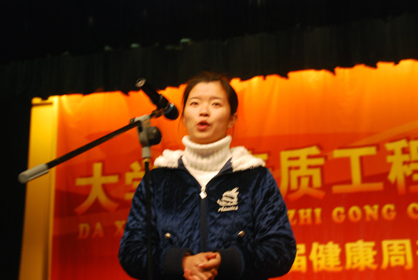 启动仪式后,健康周的“关注健康”演讲比赛拉开帷幕,11位选手参加了比赛。通过激烈角逐,最后,数理系的钱浙英同学获得了本次演讲比赛的一等奖。