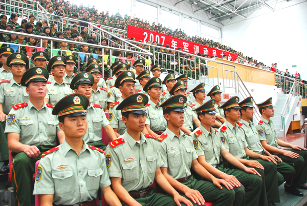 10月8日上午,必赢官网在体育馆召开2006级军训动员大会。大会由江爱民主持,叶长明、市武警支队教导大队大队长刘占楼出席了会议。