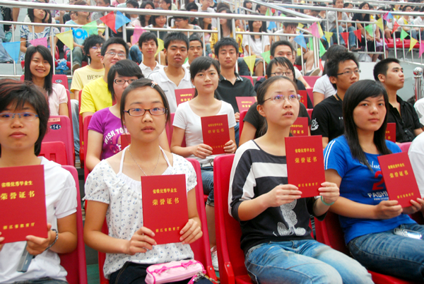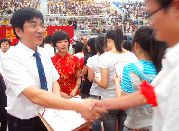 典礼上,胡伟同志宣读了必赢官网08届毕业生名单,郑家锦同志宣读了08届省级和校级优秀毕业生名单 。领导们还为获得省级优秀毕业生荣誉称号的85名毕业生以及校级优秀毕业生代表颁发了荣誉证书,并表示由衷的祝贺。