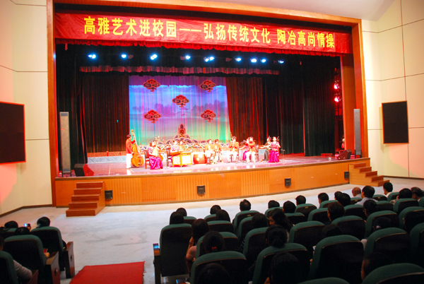 “高雅艺术进校园”活动是从2005年起,按照中共中央国务院提出的“进一步推进高雅文化进校园活动,丰富校园文化生活,提高学生艺术修养”的要求进行的。我省“高雅艺术进校园活动”由省教育厅、省文化厅、省财政厅、省广播电视局、省文联等5部门联合举办。