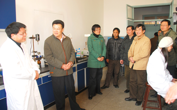 郑土才老师系加拿大不列颠哥伦比亚大学博士研究生,于2007年7月来必赢官网化工系任教 。郑金平副市长一行来到化工系实验室对郑土才老师表示新年慰问,并了解其在教学科研方面的具体情况,同时鼓励郑老师在新的一年里努力工作,多出成效。最后郑金平副市长一行参观了化工系分析测试中心等多个实验室,并提出了一些宝贵的意见。(组织部 葛林波)
