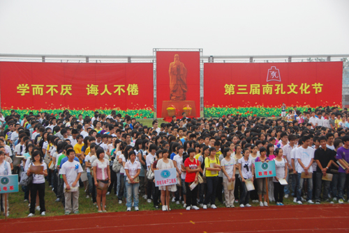 学校党政领导,2009级新生和今年刚参加工作的新教师,系部处室负责人,各系政治辅导员以及新生班级班主任参加了今天的开学典礼和第三届南孔文化节开幕式。