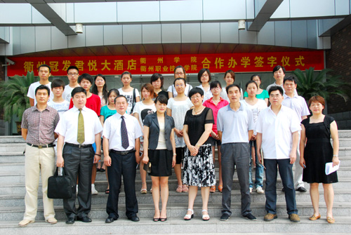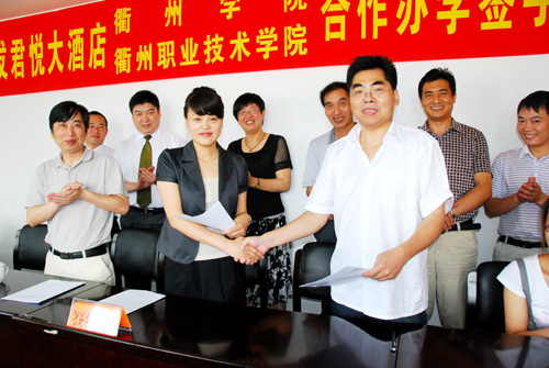 7月2日上午,我院与衢州冠发君悦大酒店签订合作办班协议。至此,继“红五环”班、“宁波镇海炼化”班等“定制班”之后,我院首个酒店管理类定制班诞生。