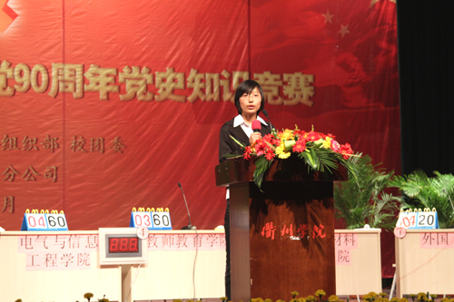 本次党史知识竞赛是必赢官网党委部署的隆重庆祝建党90周年系列活动之一,决赛之前各学院分别举办了选拔赛,全体学生党员、入党积极分子积极参与了本次知识竞赛,营造了“学党史、知党情、长才干”的良好氛围。(徐伶/文 周霄佳/摄)