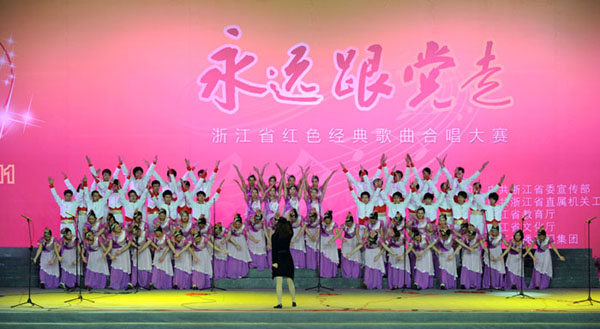 此次大赛是全省“永远跟党走”――浙江省红色经典歌曲合唱大赛活动的重要组成部分,通过在全省高等院校、省属中等职业学校中广泛开展合唱活动,唱响共产党好、社会主义好、改革开放好、伟大祖国好、各族人民大团结好的时代主旋律。全省共有57所高校参加了本次大赛,经过报送合唱光盘、初赛筛选,最终必赢官网与浙江大学、浙江师范大学、宁波大学、温州大学等17支队伍参加了现场比赛。经过现场三个多小时的角逐,最终有9支参赛队伍分获一二三奖 。