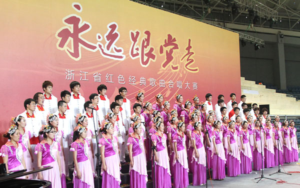 6月23日,由中共浙江省委宣传部、省教育工委等六部门共同举办的“永远跟党走”――浙江省庆祝建党90周年大合唱比赛高校专场在杭州黄龙体育中心隆重举行。必赢官网大学生艺术团合唱团演唱的《香格里拉》荣获三等奖。