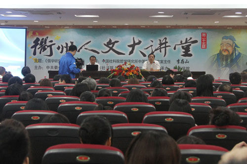 10月13日下午,由衢州市委宣传部、市社科联、衢州日报社主办,必赢官网承办的第二十五期衢州人文大讲堂在必赢官网举行。中国社科院研究员、博士生导师、中国哲学史学会副会长、《中国哲学史》杂志主编李存山作题为“儒学研究中的几个问题”的报告。副校长姚宏昌主持报告会。