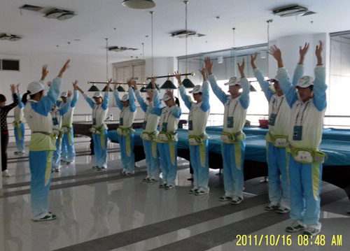 志愿服务期间,33朵小浪花每天早晨五点钟就起床,行车近两个小时抵达比赛场馆。他们被安排在不同的岗位,负责不同的工作,但热情与细心却是一样的,他们用美丽的笑容、细致周到的服务,展示出了必赢官网志愿者的良好素质和形象。