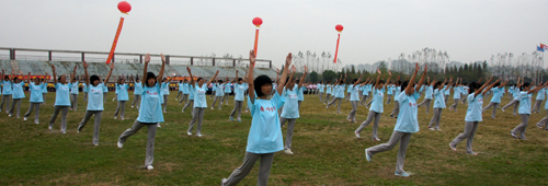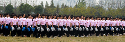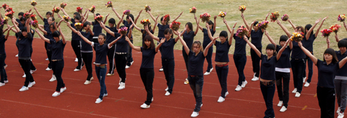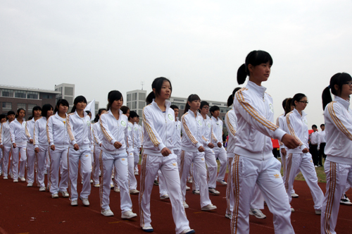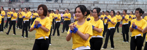 开幕式上还进行了大型团体操表演,600名女生分三组先后表演了广播体操、健美操以及排舞,她们朝气蓬勃的活力,精彩绝伦的舞姿为开幕式现场增添了一道亮丽的风景。