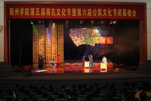 伴随着一阵铿锵有力的鼓声,晚会帷幕缓缓拉开。晚会以孔子答弟子问作为开场秀,生动展示了本届南孔文化节“博学慎思,明辨笃行”的主题。优美的美声独唱、幽默风趣的小品、学生自己改编的三句半、轮滑舞、互动游戏、校舞蹈团的民族舞、青春剪影走秀……一个个精彩纷呈的节目使观众热情高涨。