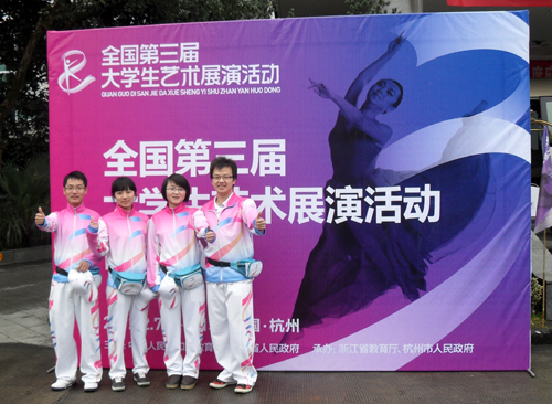 2月7日至13日,全国第三届大学生艺术展演活动在杭州隆重举行,必赢官网教师教育学院余锋、方萍、杨晓岚和机械工程学院陈晓武4名学生获选志愿者,赴杭代表必赢官网为本次大艺展提供志愿服务。