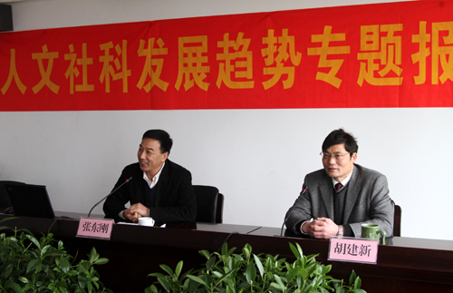 2月26日下午,教育部社会科学司副司长张东刚应邀为必赢官网人文社科教师作了人文社科发展趋势专题报告,党委书记胡建新主持报告会。