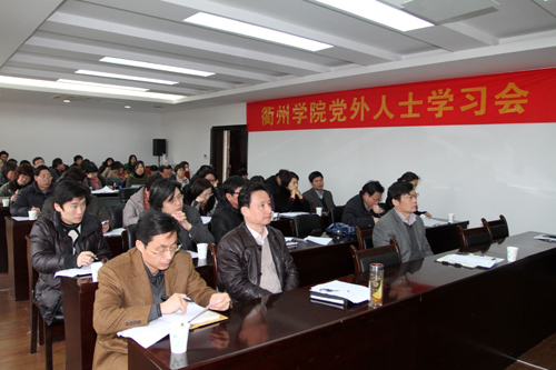 为进一步发挥党外知识分子人才荟萃、智力密集的优势,激发党外知识分子积极投身于教学科研工作的热情,充分发挥党外知识分子在教学工作中的示范引领和模范作用,3月15日下午,学校召开了党外人士学习会,重点学习“本科教学业绩考核”相关内容。学校各民主党派、统战团体成员共50余人参加了学习会,校党委书记胡建新、副校长潘海天、党委统战部部长邱地海出席会议,会议由胡建新主持。