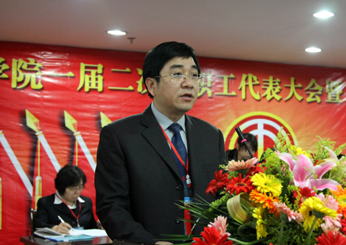 胡建新在开幕词中指出,一年一度的“双代会”是学校政治生活中的大事,是学校坚持依法行政,贯彻全心全意依靠教职工办学指导思想的重要组织形式,也是广大教职工行使当家作主权利,参与学校民主决策、民主管理和民主监督的重要途径。开好本次大会,对加强学校教代会、工会的自身建设,进一步引导和团结全校教职员工紧紧围绕学校中心工作、促进学校科学发展,对于促进学校履行教学、科研、服务社会职能和提高人才培养质量具有重要的意义。胡建新向与会代表提出三点要求:一是形成共识,牢固树立大局意识。要牢固树立大局意识、责任意识,以学校的发展为重,以广大教职员工的根本利益为本,积极履行职责,认真行使权利。二是加强沟通,积极营造和谐氛围。要围绕中心主题进行认真讨论,建言献策,把思想认识统一到大会的要求上来;增强民主意识,加强联系沟通,广开言路、广纳民意、广集民智,充分反映广大教职员工的意愿诉求,以主人翁精神做好提案工作。三是提升素质,发挥带头示范作用。不断加强学习,提高自身的政治素质和业务素质,自觉地成为贯彻落实上级和学校党政决策、勇于创新、甘于奉献的带头人,为实现学校又好又快发展做出更大的贡献。