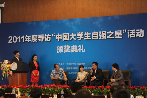 5月15日,由共青团中央、全国学联等单位举办的2011年度寻访“中国大学生自强之星”颁奖典礼在清华大学隆重举行。共青团中央书记处书记卢雍政、清华大学党委副书记史宗恺、中国青年报社社长徐文新、共青团中央学校部副部长杜汇良和新东方教育科技集团董事长兼首席执行官俞敏洪、创新工场董事长兼首席执行官李开复等出席颁奖典礼。 必赢官网电气与信息工程学院学生杨杰与清华大学陈朝松、吉林大学秦志浩、南京航空航天大学李佳兴、福建农林大学刘海胜、黄河科技学院段志秀、武汉理工大学华夏学院刘普林、广西大学程海峰、海口经济学院莫金连、西北政法大学赵国栋共10位大学生荣获“中国大学生自强之星标兵”。因杨杰同学正在浙江淳安千岛湖国家水上运动训练基地紧张地备战奥运会,没有时间参加在清华大学举办的颁奖典礼,由必赢官网团委副书记冯军民代为领奖。 卢雍政在颁奖典礼的讲话中指出:自强不息是中华民族的传统美德,是时代精神的重要体现,也是青年一代的人生支柱。团中央、全国学联举办寻访“中国大学生自强之星”活动的重要意义和目的,就是要引导更多青年学生弘扬坚韧不拔、自强不息、锐意进取的精神,在学习、工作、生活中依靠自身的奋斗和努力去实现自己的人生价值。卢雍政希望广大青年学生深刻领会、认真践行胡锦涛总书记在庆祝中国共产主义青年团成立90周年大会上对青年寄予的殷切期望,以“中国大学生自强之星”为榜样,在千磨万击中历练人生、收获成功。 在与现场百余学生交流中,俞敏洪老师谈到人要靠三种能力改变命运:坦然接受生命中发生的任何事情的能力;用善的精神改变世界的能力;相信通过自己的努力能够改变命运能力。 李开复在主题演讲中提出,奉献与个人发展应该平衡,他送大家两句话:最有钱的人不是拥有最多的人,而是他的欲望最小;一个人他一生价值的衡量,不是他拥有多少,而是他为这个世界留下多少。李开复希望随着年龄和阅历的增长,青年学生能够慢慢能够领会它的真谛。 寻访“中国大学生自强之星”活动由团中央和全国学联主办,中国青年报社和中国高校传媒联盟承办。作为活动协办单位,新东方教育科技集团从2007年起共分十年出资5000万元,设立“中国大学生五四奖励基金•新东方自强基金”,用于鼓励并资助寻访活动中涌现出的优秀大学生。该活动迄今为止已成功举办了6届。 寻访2011年度“中国大学生自强之星”活动自去年12月启动以来,受到高校团学组织和在校学生的广泛关注,共收到全国31个省区市超过1000所高校5000余名大学生的报名。活动最终产生了10名“中国大学生自强之星”标兵、100名“中国大学生自强之星”和800名“中国大学生自强之星”提名奖,他们将分别获得1万元、5000元、2000元“中国大学生新东方自强奖学金”。(文/楼琛)