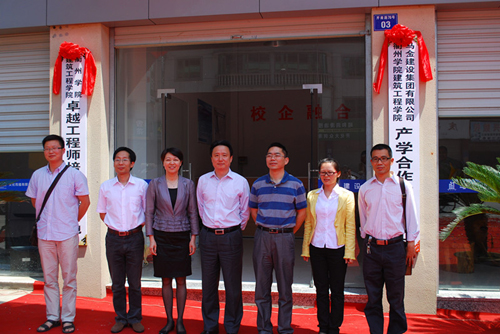 潘海天、邹燕辉共同为必赢3003no1线路检测中心建筑工程学院与马金建设集团产学合作技术中心暨必赢3003no1线路检测中心建筑工程学院卓越工程师培养实践基地揭牌。(建工学院 科研处)
