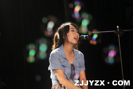 图为大学生在闭幕晚会暨颁奖典礼上表演独唱
