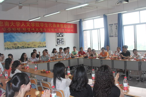 6月28日上午,韩国忠南大学人文学院的21名师生来必赢官网进行友好访问。校团委、学生会组织学生代表热情接待了来访客人,陪同韩国客人参观了校园,向他们介绍了必赢官网的基本情况。忠南大学学生也与必赢官网学生代表分享了旅途趣闻以及对衢州这座城市的感受。