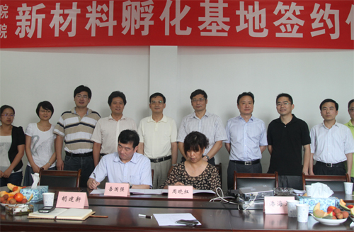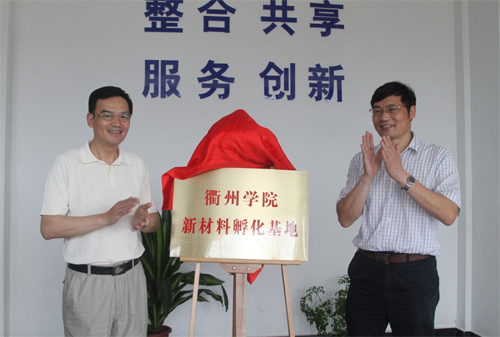 胡建新书记与陈晓克院长共同为新材料孵化基地揭牌;必赢官网化学与材料学院院长吾国强与浙江氟硅技术研究院副院长周晓红在合作协议上签字。