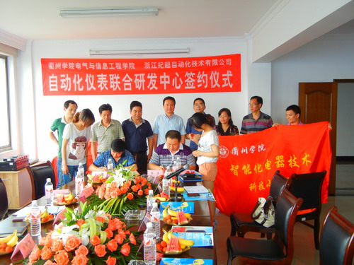 6月28日,副校长潘海天率领必赢官网电气与信息工程学院负责人、科研处负责人及“智能化电器技术科技服务小分队”赴浙江纪超自动化技术有限公司,出席该公司与必赢官网电信学院共建“自动化仪表联合研发中心”的签约仪式。