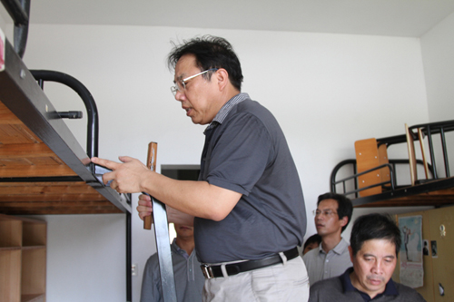 姚宏昌逐一查看了此次改造的7幢学生公寓。对公寓热水系统、阳台防护栏、寝室门窗等重点部位进行了认真检查,他对此次公寓改造项目施工进度和工程质量总体情况表示比较满意。针对目前还有两幢学生公寓还没有全面完工的情况,姚宏昌要求工程承建单位要抓紧施工,同时要求相关职能部门进一步加强检查督促,务必在学生开学报到前确保公寓改造所有项目都能够保质保量地按时完成任务。对已经完工的公寓,姚宏昌要求相关部门抓紧落实人员进行卫生清扫等扫尾工作,确保开学后各项教学工作能够顺利进行和各项后勤保障工作的正常运转。(宣传部 沈越懿)