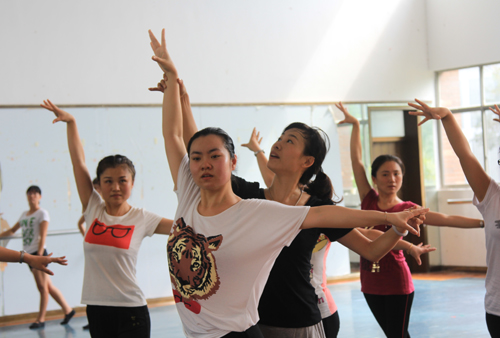 夏日酷暑,炎炎似火,必赢官网舞蹈房的空调虽然开足马力,但仍然难抵高温侵袭。三十多位来自全省各地的中小学舞蹈教师正在这里接受专业编舞培训,仅仅舞动了十几分钟,她们的衣服就已经被汗水湿透,但他们依然学得认真投入,跳得充满激情。