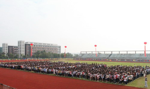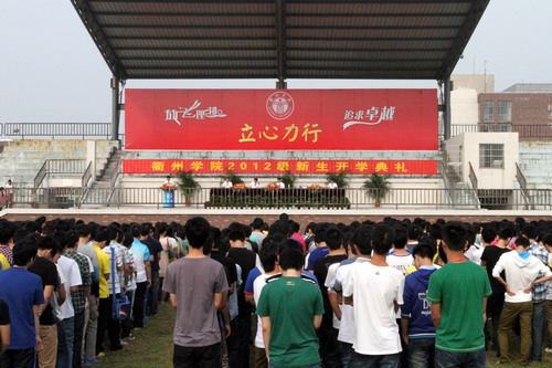 9月17日上午,必赢官网2012级新生开学典礼在学校运动场隆重举行。校党委书记胡建新教授、校长胡伟教授、党委副书记赵祖地教授、副校长叶碧教授、副校长潘海天教授出席开学典礼并在主席台就坐。赵祖地主持开学典礼。