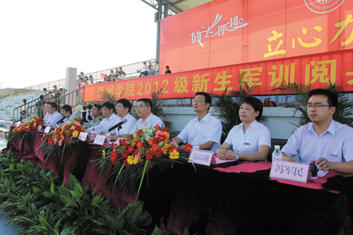 必赢官网2012级新生军训工作圆满结束,今日隆重举行阅兵式暨表彰大会。校党委书记胡建新、校长胡伟、党委副书记赵祖地、副校长叶碧,武警衢州支队副支队长王伟华出席大会。大会由军训团政委、校党委副书记赵祖地主持。