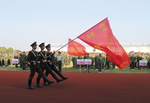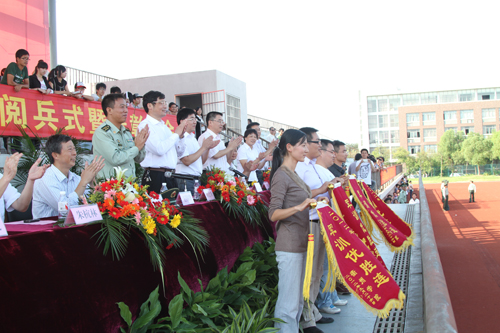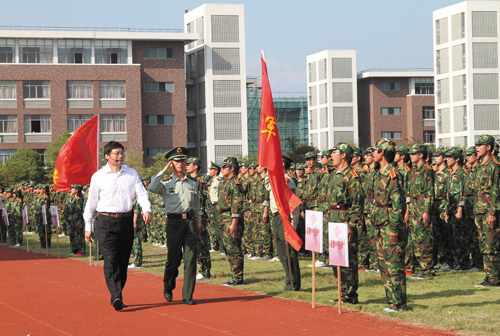 庄严的国歌声响起,军训阅兵拉开帷幕。在阅兵总指挥、军训团副团长郑新国的陪同下,党委书记胡建新检阅了33个方队。“同志们辛苦了!”胡建新书记的亲切问候表达了学校领导对学员们的关心和鼓励;“保家卫国!”军训学员们一声声雄壮的口号则喊出了当代大学生朴素而强烈的爱国热情。