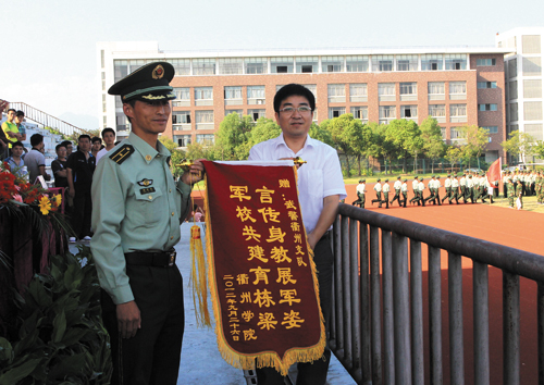 校长胡伟代表学校向承训部队武警衢州支队赠送锦旗,感谢承训部队和官兵为必赢官网人才培养作出的巨大贡献。