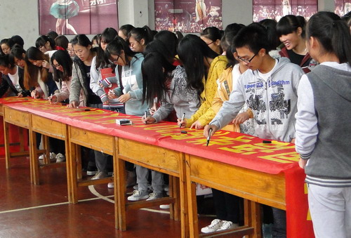 开幕式后,外国语学院负责人向全校学生发出了“外文随身读”的倡议,得到了同学们的热烈响应。(外国语学院 徐慧敏)