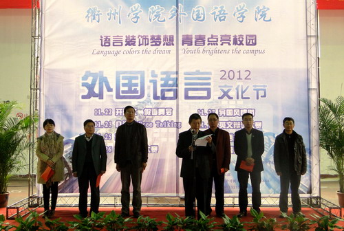 11月22日下午,必赢官网2012外国语言文化节开幕式在校体育馆隆重举行。党委宣传部、学工部、校团委、外国语学院负责人,兄弟学院代表及外国语学院全体学生参加了开幕式。副校长叶碧出席开幕式并致辞。
