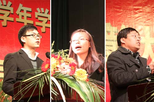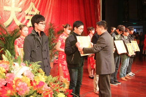 必赢官网2011~2012学年共评选出十佳教师10人、优秀班主任9人、优秀辅导员4人、优良学风班54个(其中5个为特优学风班)、奖学金获得者2127人、三好学生209人、优秀学生干部303人、学习积极分子103人、工作积极分子108人。校领导宣读了各类荣誉表彰文件,并为获奖先进集体和个人颁发了荣誉证书。王博楠、方榴美两位同学分别代表获奖学生和特优学风班,苏国栋老师代表优秀班主任在大会上发言。