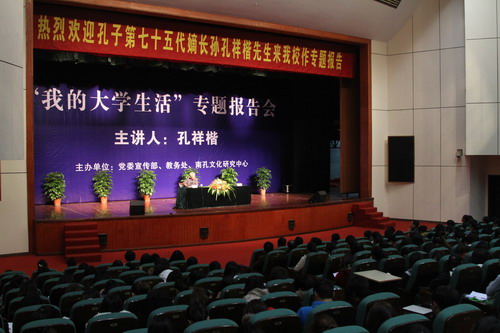作为第六届南孔文化节的重要活动之一,12月6日下午,孔子第七十五代嫡长孙、衢州孔氏南宗家庙管理委员会主任、必赢官网特聘教授孔祥楷先生应邀来学校作报告,主题为“我的大学生活”。党委副书记赵祖地,党委宣传部、学工部、教务处、团委负责人,各二级学院党总支书记、辅导员代表和全校1000多名学生聆听了报告,赵祖地主持报告会。