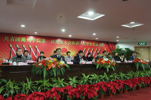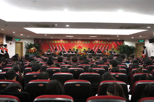 上午9点整,大会在庄严的国歌声中正式拉开帷幕。团省委常委、学校部部长陈继胜,省学联执行主席陈立群、团市委书记徐建芬,校领导胡建新、赵祖地,校纪检监察室、党委组织部、学工部、工会、各二级学院党总支负责人及浙江工业大学、浙江师范大学、浙江中医药大学、杭州师范大学、衢州职业技术学院等兄弟院校的团委负责人应邀出席。浙江大学、中国美术学院等34所高校团委、学生会也以贺信、贺电形式,向大会的召开表示祝贺。