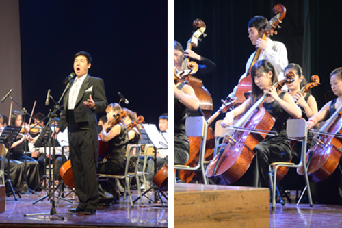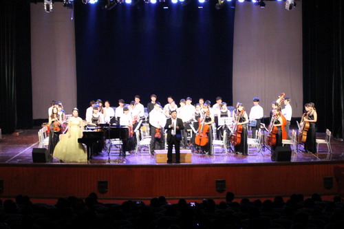 本场音乐会由浙江师范大学交响乐团张艺老师指挥,为全场师生演奏了吕其明的管弦乐作品《红旗颂》、巴赫的《D小调第一钢琴协奏曲》之第一乐章、贝多芬的《F大调浪漫曲》、莫扎特的《G大调弦乐小夜曲》之第三乐章、马斯卡尼的歌剧《乡村骑士》间奏曲、久石让作品《天空之城》等十首中外名曲。期间,音乐学院声乐系张�老师还献上了歌曲《绿树成荫》。音乐会在格里格作曲的经典作品《A小调钢琴协奏曲》中落下帷幕,现场响起了观众雷鸣般的掌声。