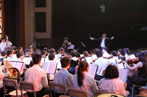 12月14日晚,由校党委宣传部、教师教育学院共同主办的浙江省大学生艺术团浙师大分团室内乐团音乐会在校大礼堂拉开帷幕,校党委书记胡建新、各职能部门领导、各学院党总支书记与全校千余名师生一同观看了演出。