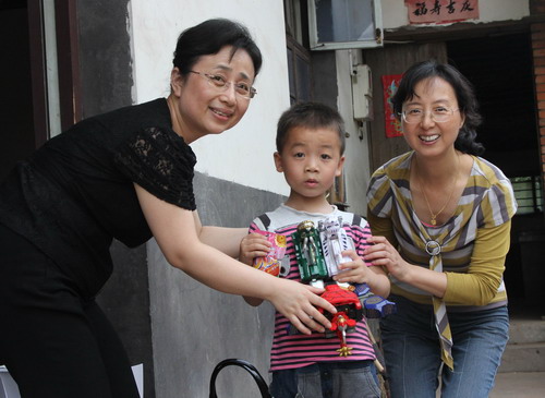 为小欣宇准备的礼物是一辆红色遥控汽车,送给吕昊小朋友的则是第一次看望他时他梦想得到的变形金刚。两位小朋友对礼物都很喜欢,爱不释手。