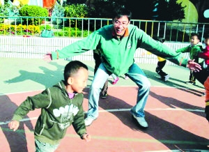 我现在主要负责孩子们的体育教学和园里的公共安全。每天上下学在幼儿园门口保护孩子们的安全;园里的课件制作、计算机等后勤工作,我也得心应手。