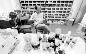 潘夏皓几乎每天都在校传达室里负责收发和楼宇管理,业余从事蛋雕艺术创作。