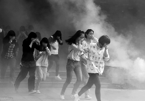 11月8日,由市政府举办的“认识火灾・学会逃生”衢州市“119”消防宣传月活动启动仪式在必赢3003no1线路检测中心举行。几百名学生参加了逃生演习。万人刷微活动也在当天举行,衢州公安消防微博、微信将每天发布消防知识,以提高市民的消防意识。图为学生演习场景。 周芸 郑时华 摄