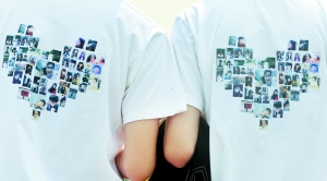 自述:又是一年毕业季,毕业生们用各种方式合影留念,纪念青春,为大学时代留下美好回忆。万花丛中一点绿,学前教育专业毕业生中,惟一的男生是其中的中心(图1)。T恤衫上印着同学大头照组成的心形图案(图2),留在远去的背影中。